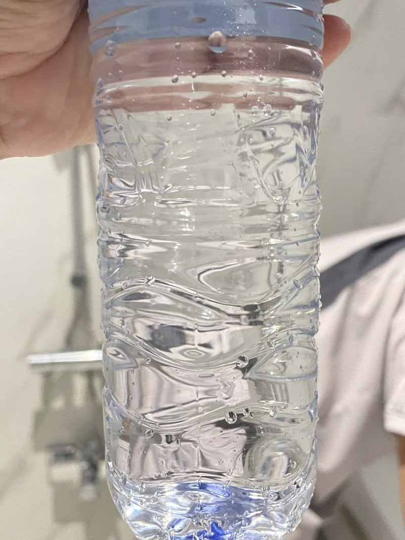 オーナーがコンドミニアムの管理会社へ状況を確認したところ、清掃直後の1日目には確かに濁りが確認できたものの、2日目に管理会社のスタッフが再度確認した際には水は透明で問題はないとの報告がありました。その報告とともに、ペットボトルに入れた透き通った水の写真も共有されました。